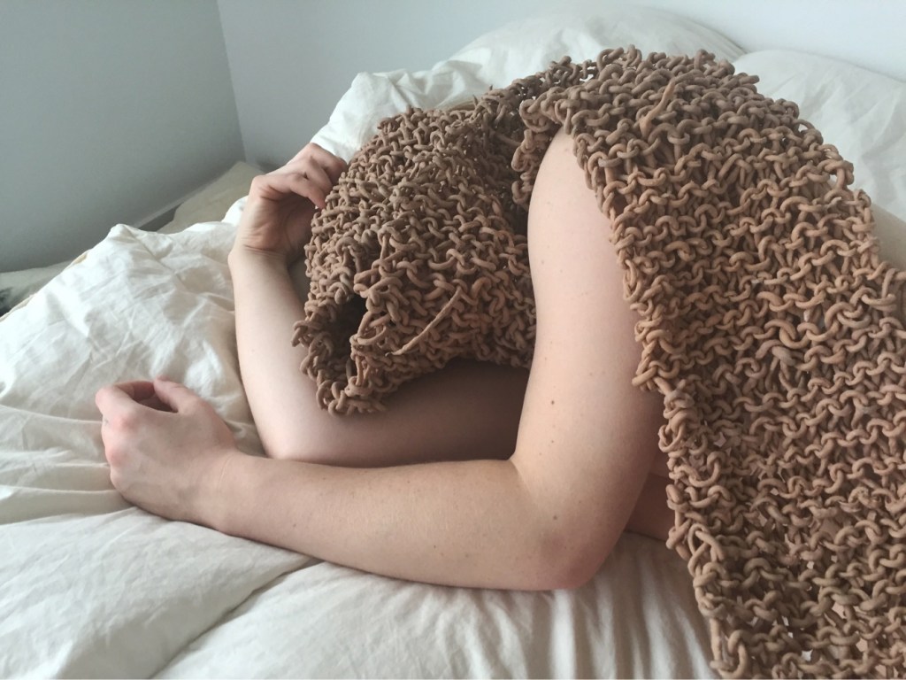 2017-2018. Installation and wearable. Latex, yarn, steel, rope.