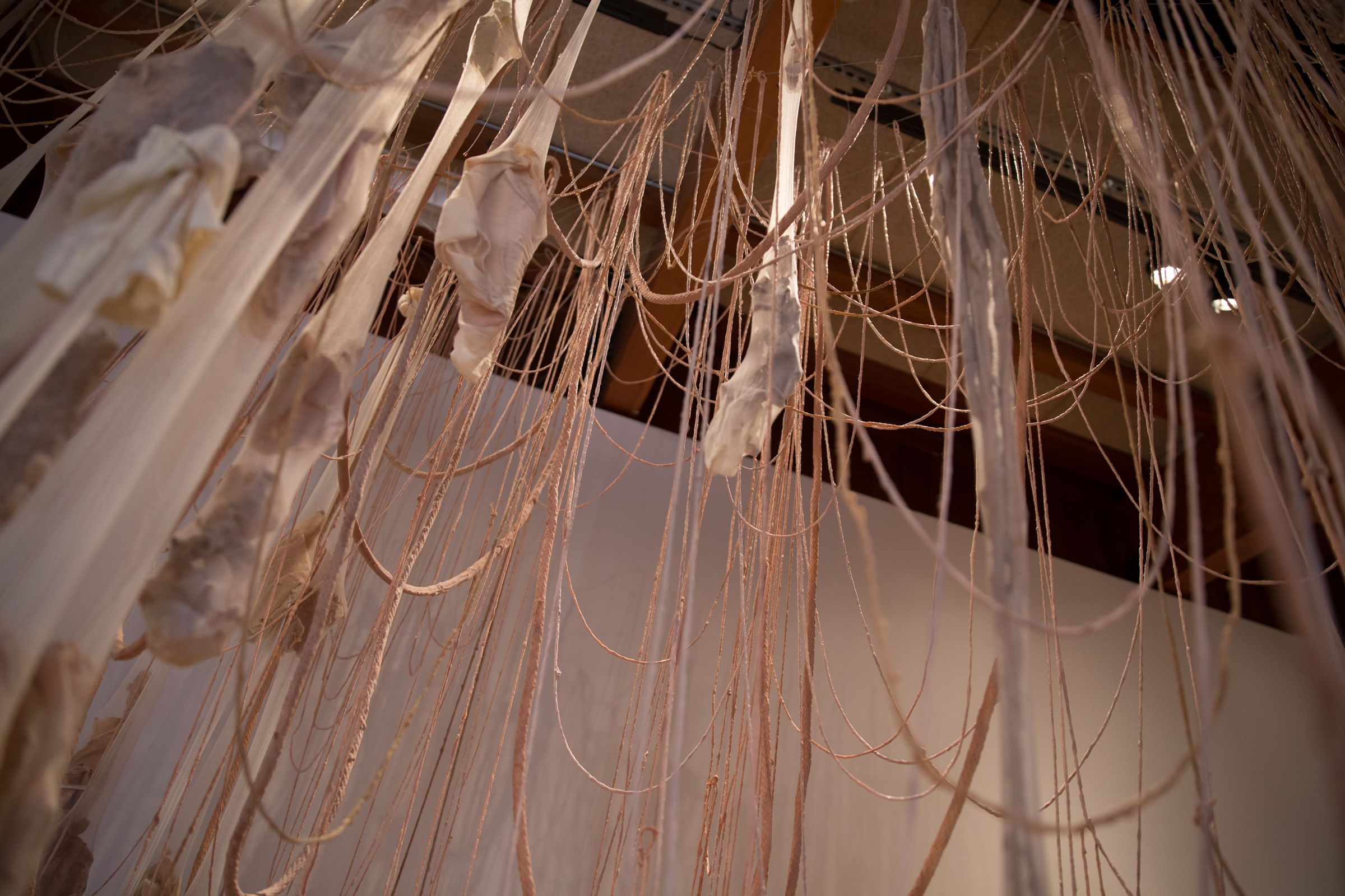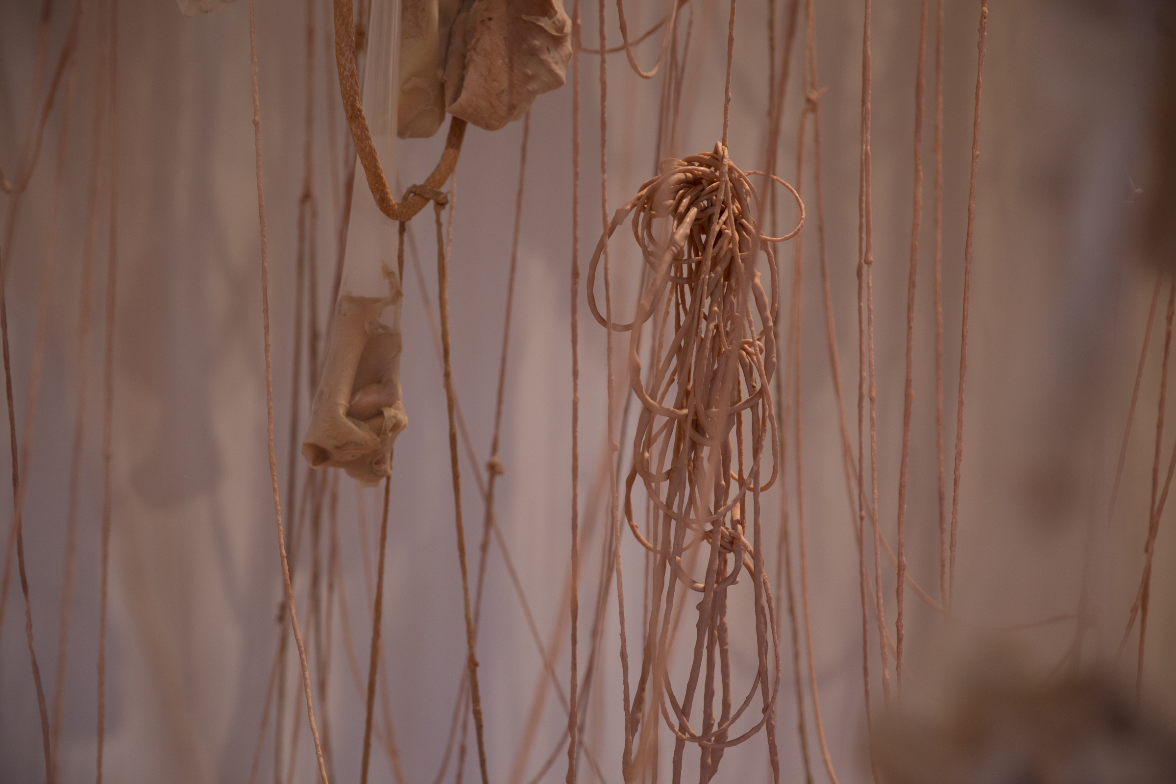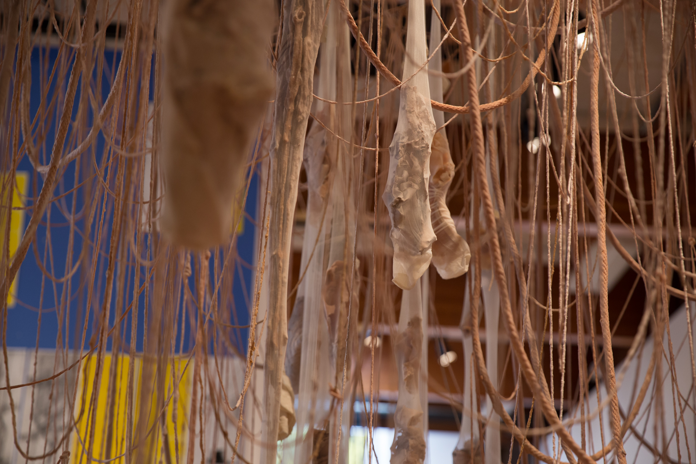 2017. Installation. Latex, nylon, yarn, rope, steel cable, stone, paint.