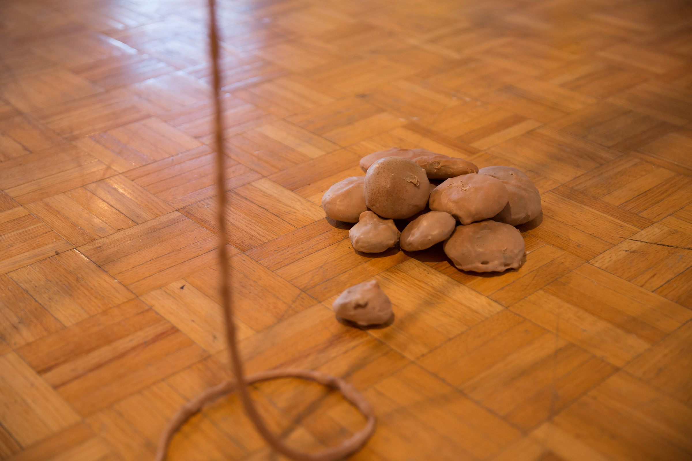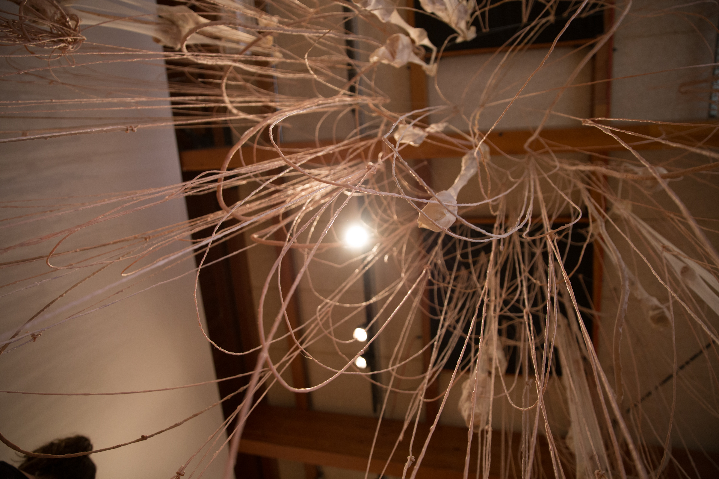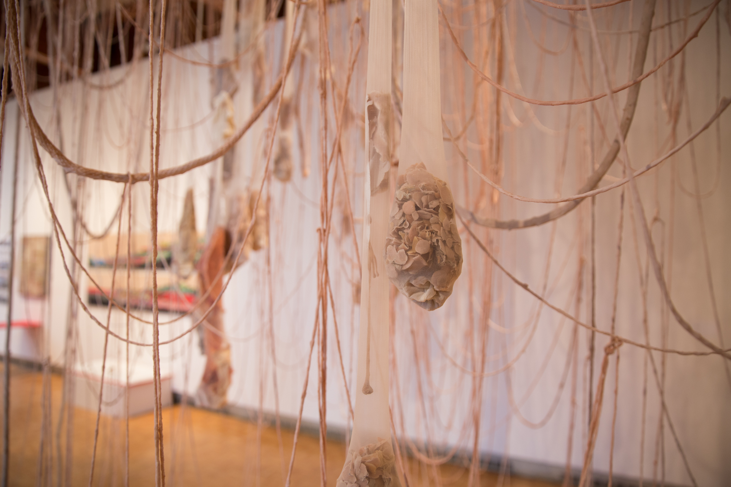 2017. Installation. Latex, nylon, yarn, rope, steel cable, stone, paint.